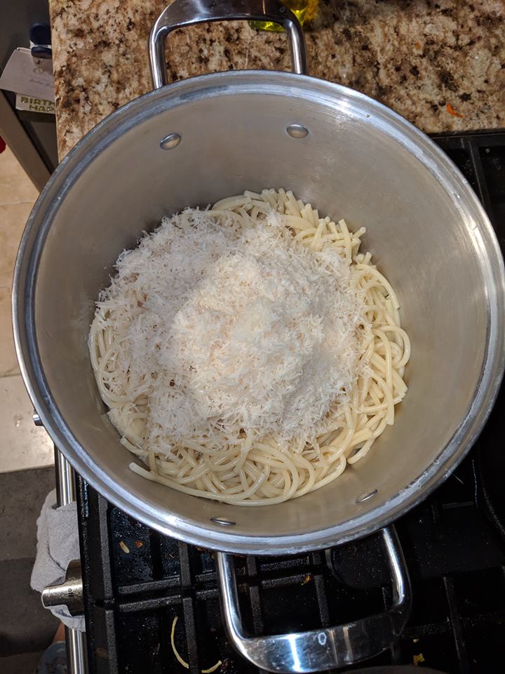 I used my huge double boiler to cook my pasta. Make sure you use a ton of salt! Alex says “the pasta water should taste like seawater.”