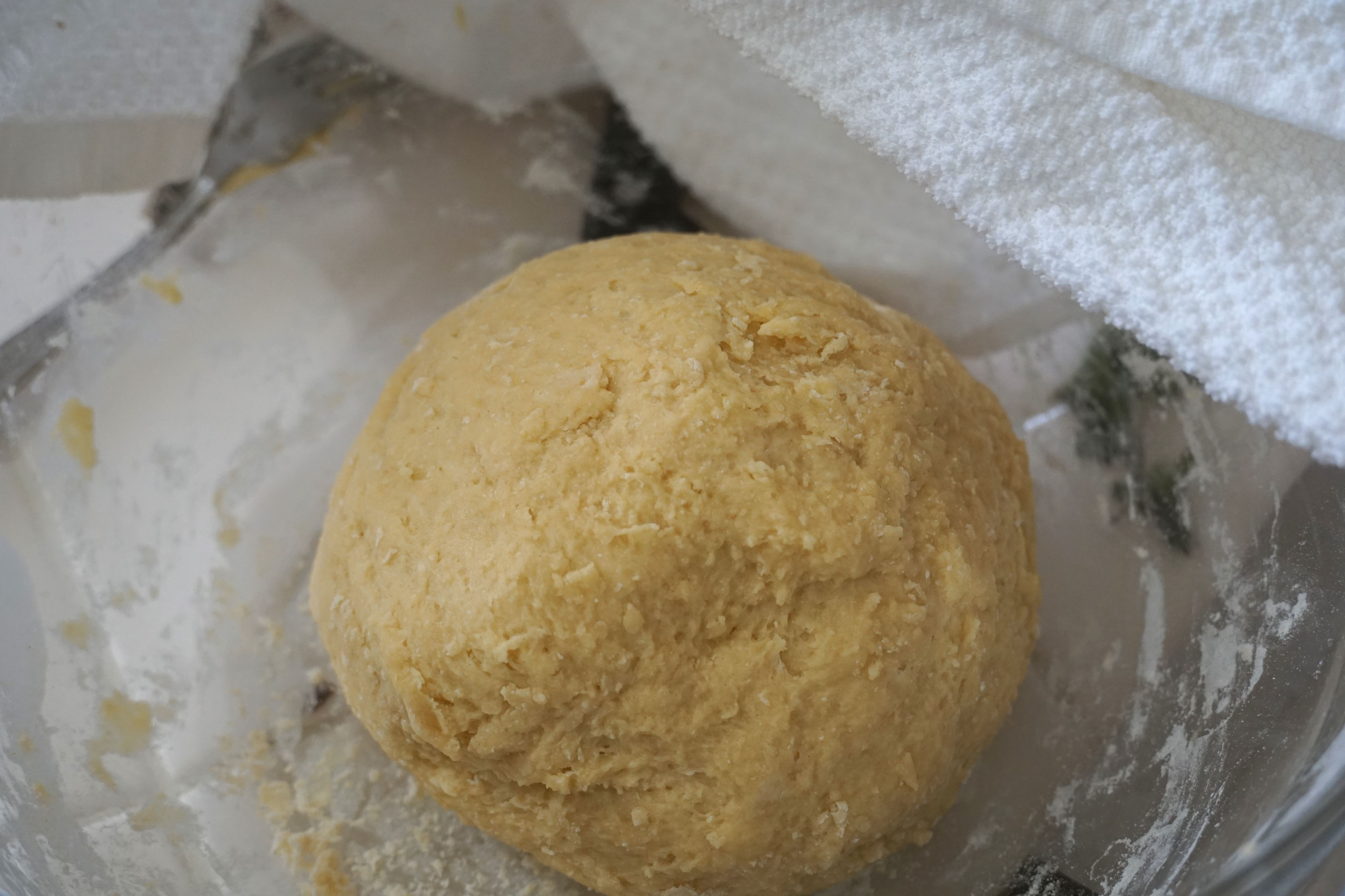 To make the ravioli, combine flour and eggs. Mix using a fork until you can’t anymore and then swap to mixing my hand. Kneed dough around to get all the dry flour. If the pasta is too dry, add some water. Kneed until the dough comes together into a smooth ball. Cover with plastic wrap and let sit for at least 15 minutes.