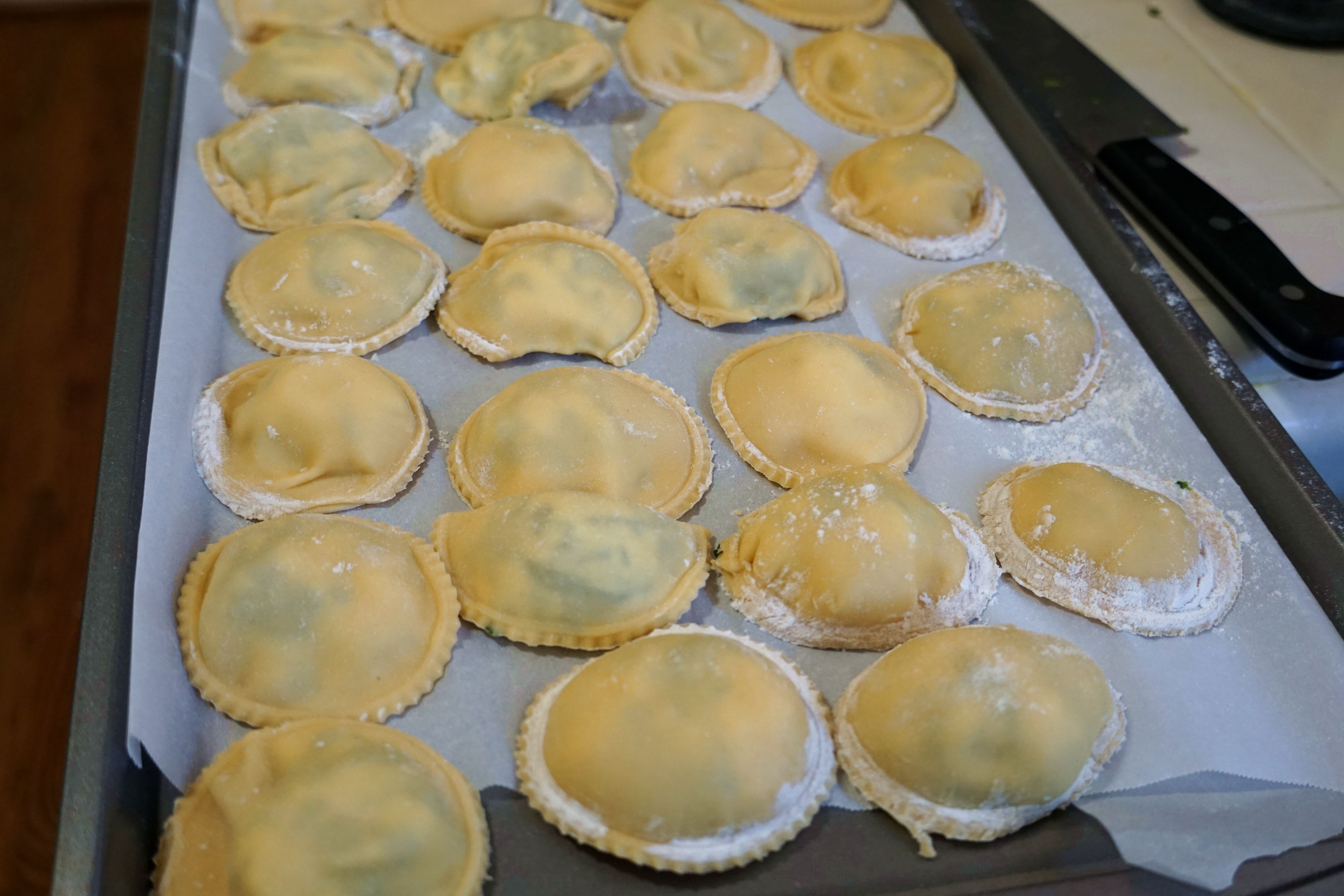 Repeat as many times as necessary. Cook ravioli in salted, boiling water for 2-3 minutes.